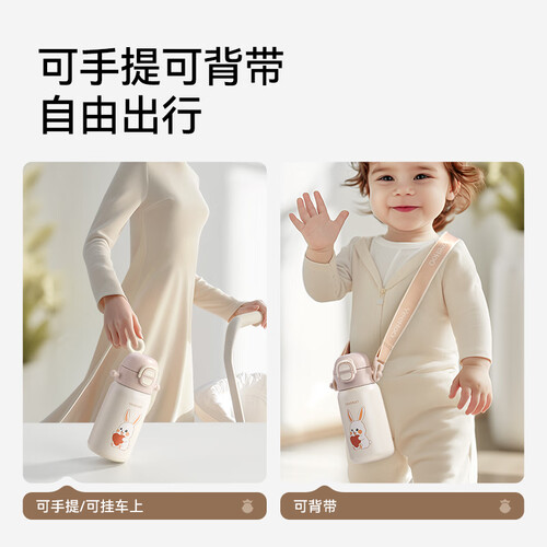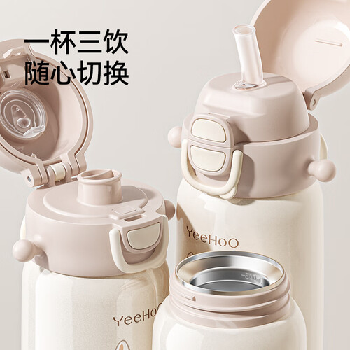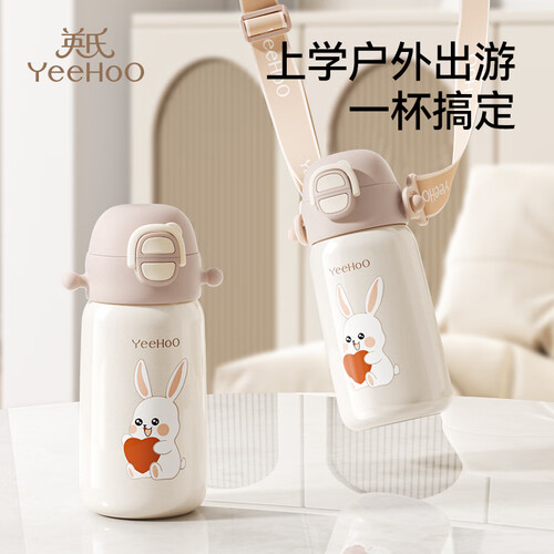 英氏(YEEHOO)保温杯儿童水杯宝宝保温杯水杯316不锈钢保温杯吸管杯外出杯 开心兔双饮保温杯
