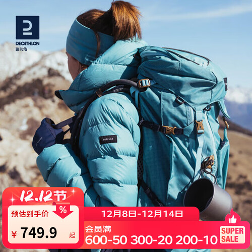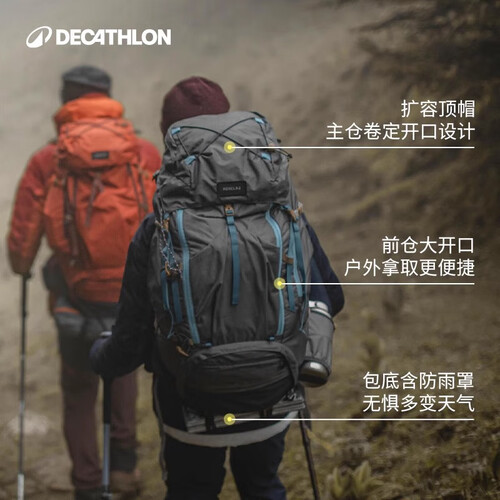 迪卡侬登山包徒步背包双肩包MT500Air户外旅行城市背负系统重装大容量 蔚蓝_55L 轻量化设计 背负更轻松
