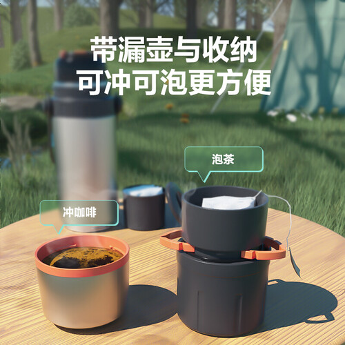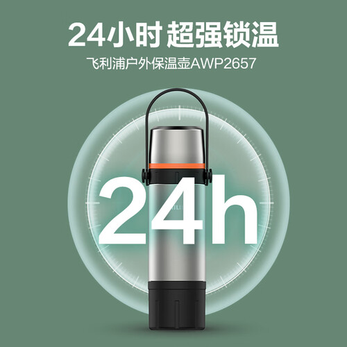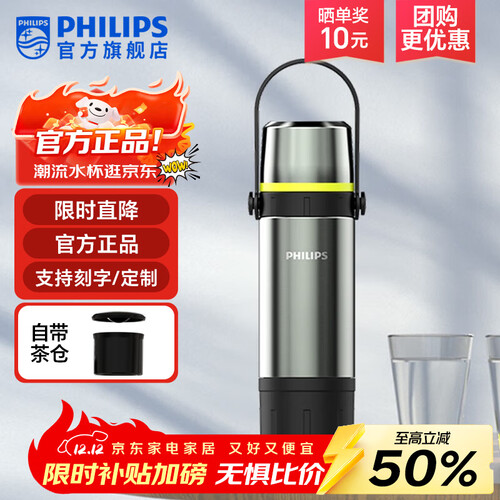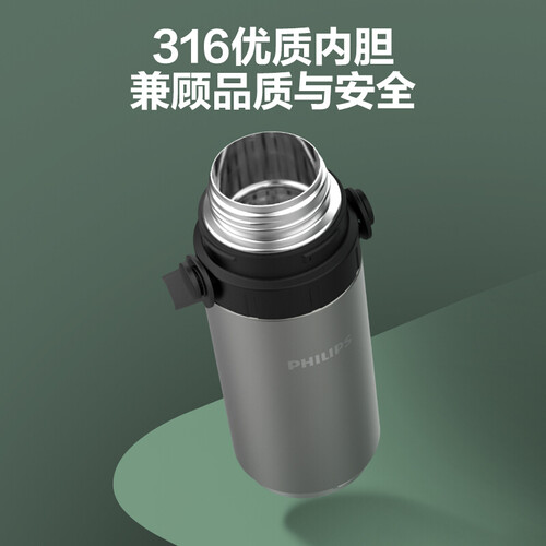 飞利浦(PHILIPS)便携旅行热水壶 带茶仓配茶漏316不锈钢茶水壶 户外露营保温壶 【自带茶仓】泡茶壶-灰色650ml