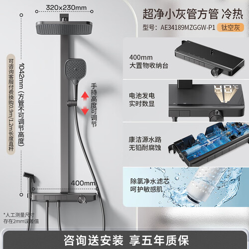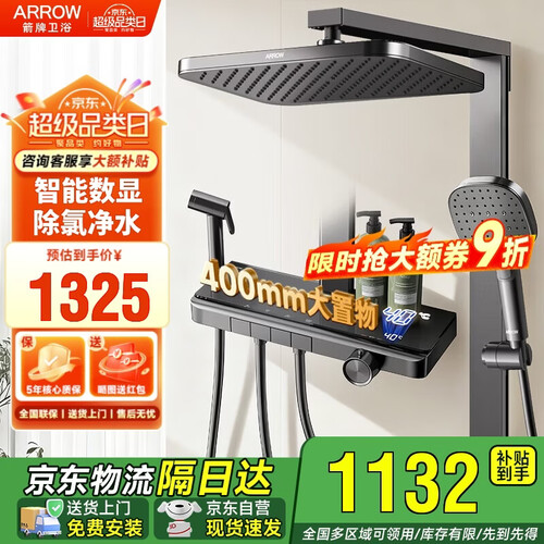 箭牌淋浴花洒套装 温度显示大顶喷花洒手持增压数显【政府补贴15%】
