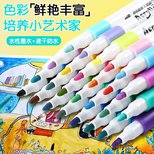 绘画工具丙烯马克笔水性速干棉芯陶瓷绘画防水颜料美术水彩笔 彩色马克笔12色