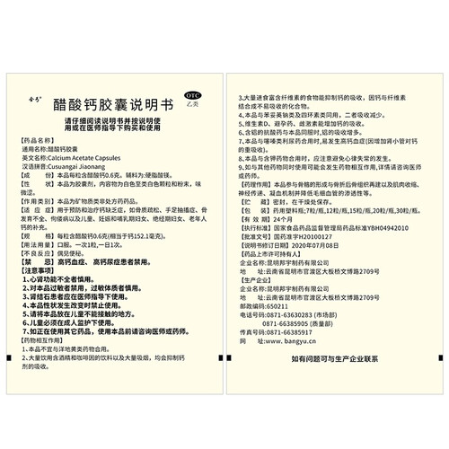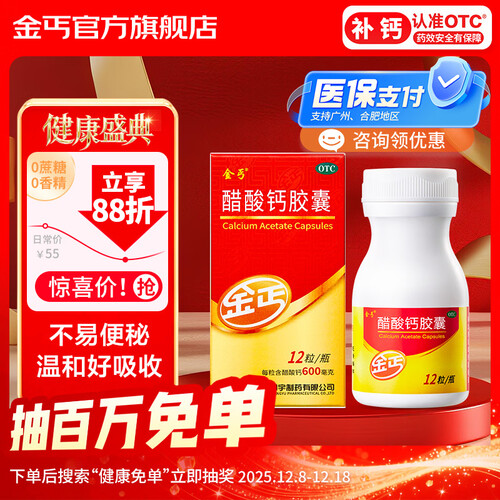 金丐 醋酸钙胶囊 0.6g*12粒骨质疏松手足抽搐症骨发育不全佝偻病儿童老人补钙
