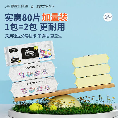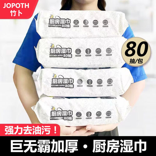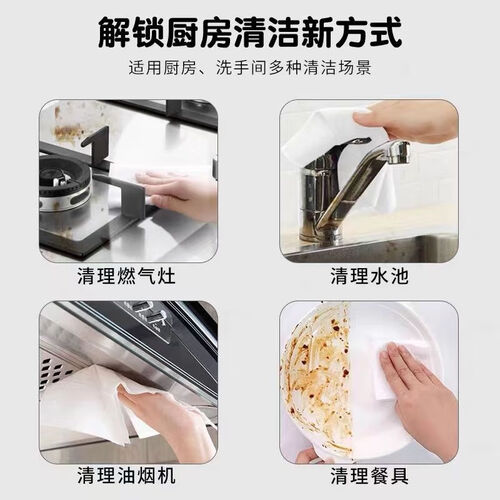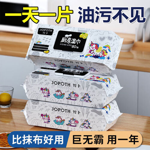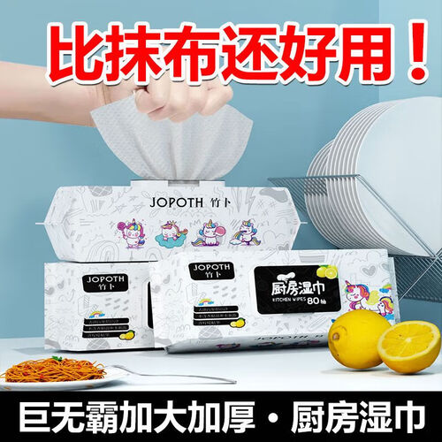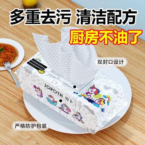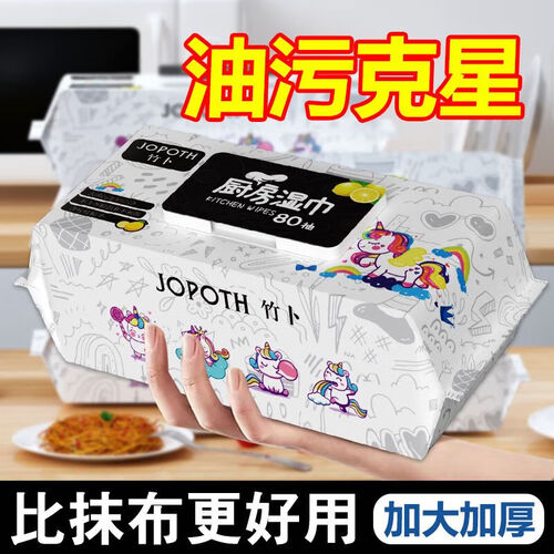 限时】厨房湿巾纸独角马去油污家用油烟机清洁抹布25cm 厨房湿巾去污神器加大加厚款 5包