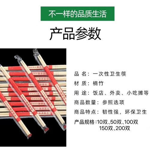 一次性筷子商用外卖竹筷快餐方便卫生竹筷食品级结婚新年春节 200双