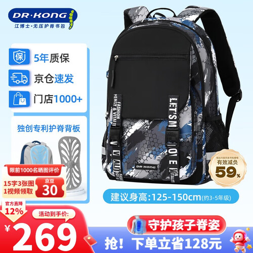 江博士(DR·KONG)护脊书包3-6年级男孩小学生书包减负轻便大容量安全反光双肩背包
