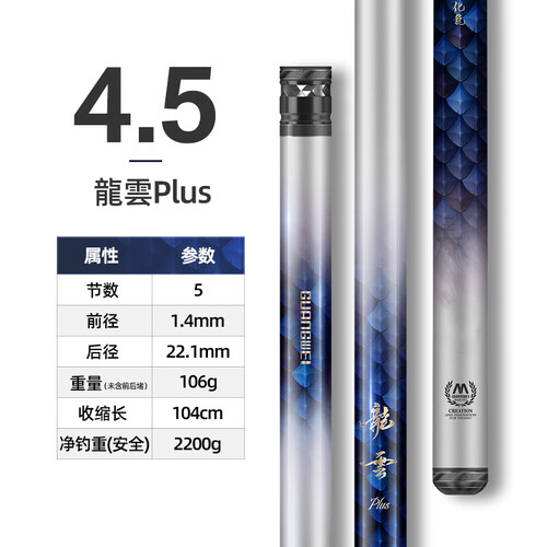 GW新品龍雲PLUS台钓竿手杆28调龙云碳素超轻超硬轻量大综合钓鱼竿 4.5m 龍雲PLUS