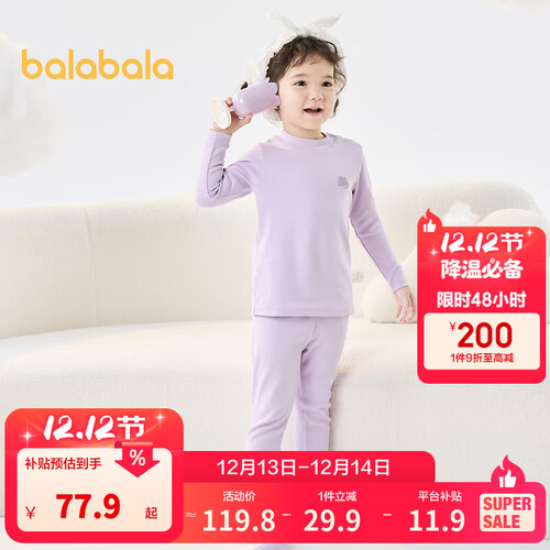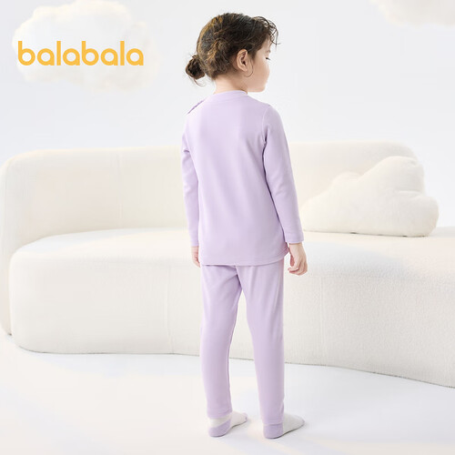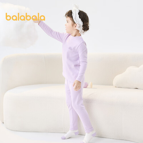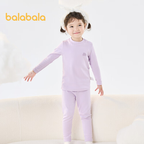 巴拉巴拉女童内衣套装秋冬季加厚儿童保暖秋衣秋裤中大童内搭打底睡衣童装 粉紫70013 90