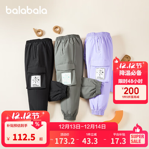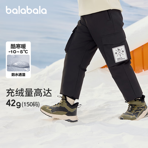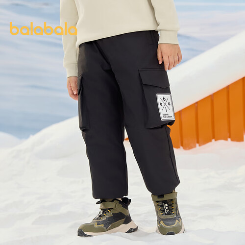 巴拉巴拉童装儿童裤子男童女童长裤冬季中大童羽绒裤宽松 黑色90001-灰鸭绒 120 cm