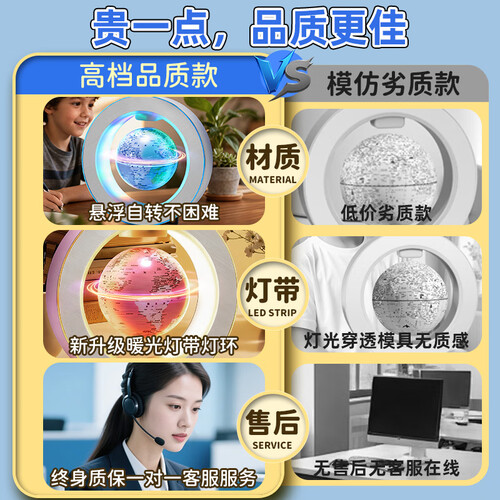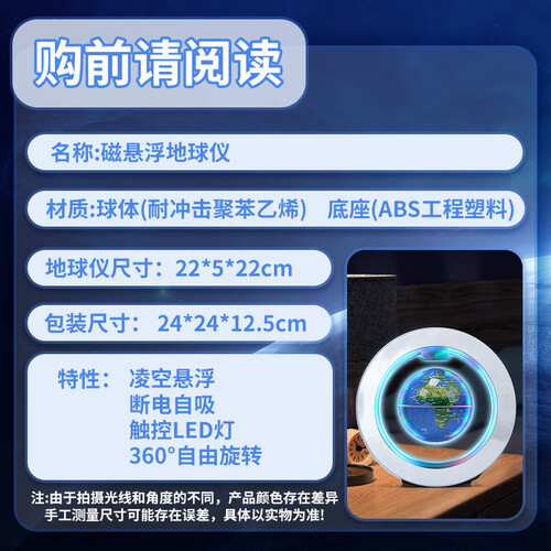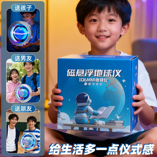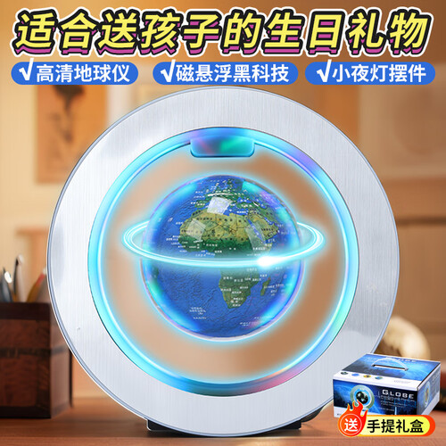 JOYSTONE磁悬浮地球仪小学生10玩具8-12女9男孩生日礼物7-14岁圣诞节礼物 4寸蓝悬浮-自转发光-豪华礼盒 新年六一儿童节礼物12岁男女童