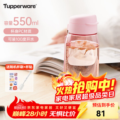 特百惠(Tupperware)乐趣550ml男女学生大容量运动可爱便携夏季塑料水壶水杯子 柔蜜粉550ml1个