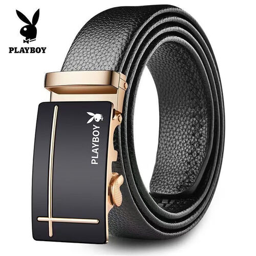花花公子加厚皮带扣单头扣头男士商务自动扣休闲腰带皮带头单头 金色斜边双杠 130cm 【适用于180-220斤】