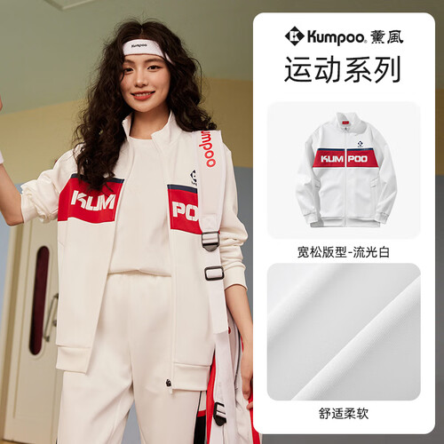 薰风(KUMPOO)羽毛球服外套 男女同款双色宽松柔软亲肤熏风运动服 K241U-5025 流光白外套 S