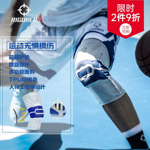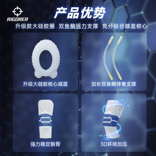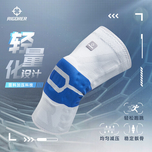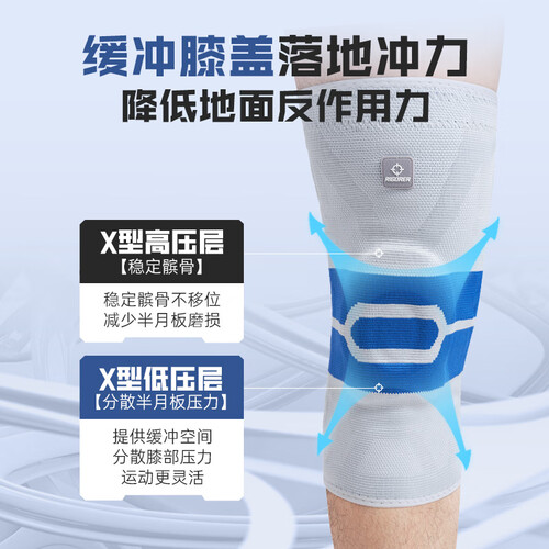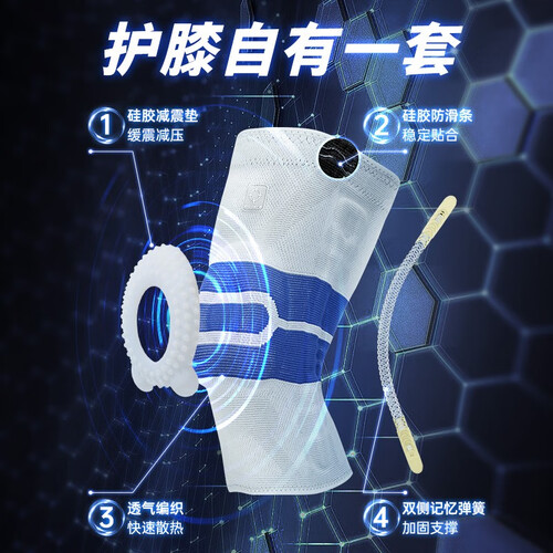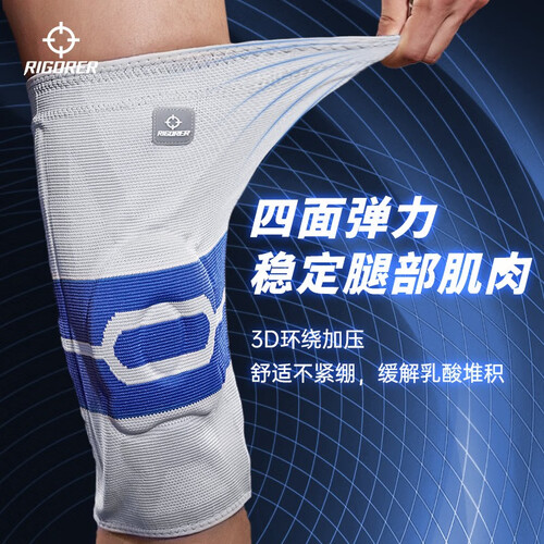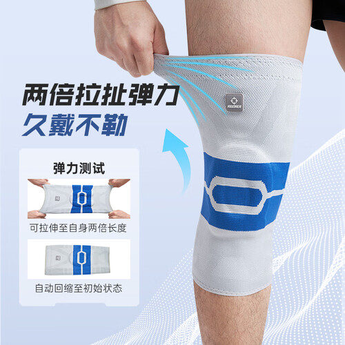 准者【单只装】运动护膝硅胶垫弹簧条半月板护腿男女士跑步护具篮球 灰/蓝【普通款】 S 70-85斤