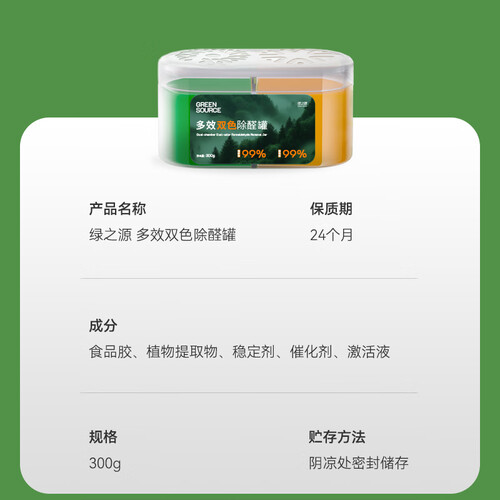 绿之源多效双色除醛罐 除味除甲醛果冻除醛魔盒新房甲醛清除剂真除醛 1罐丨多效双色除醛罐丨净化15-20㎡ 300g 1盒
