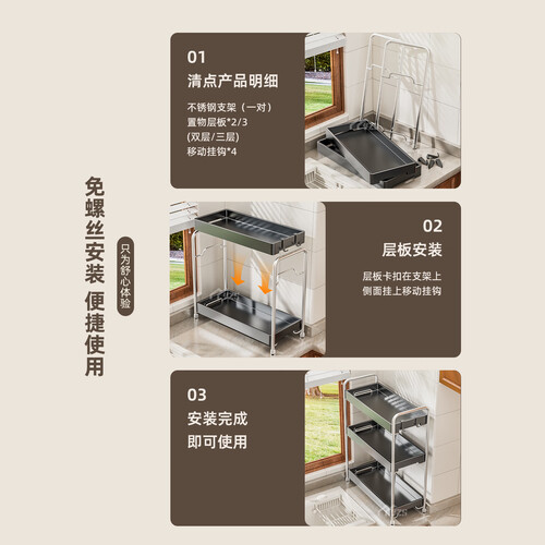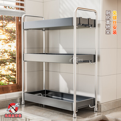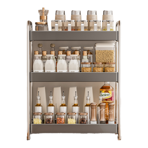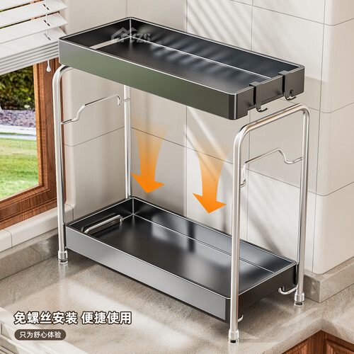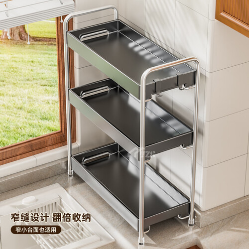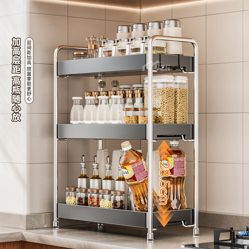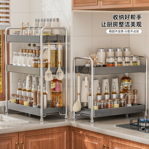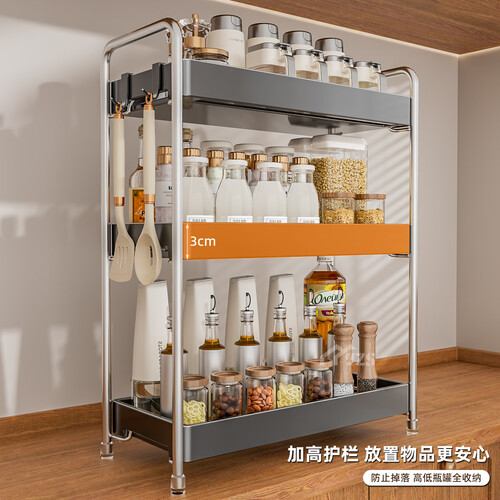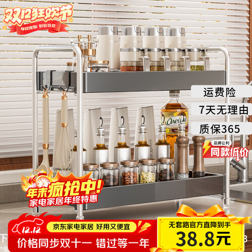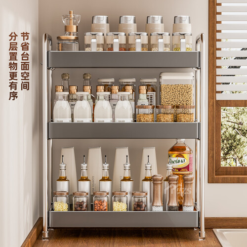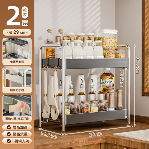 禾枝家用台面不锈钢调料架窄小调味品厨房置物架多功能油盐酱醋收纳架 【不锈钢百搭灰】双层调料架29cm