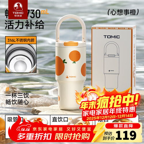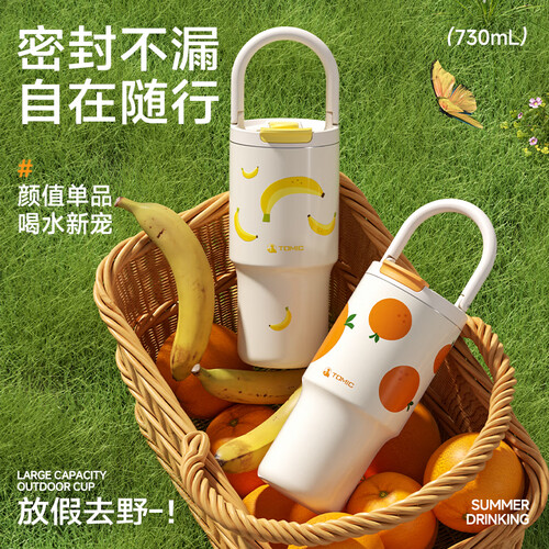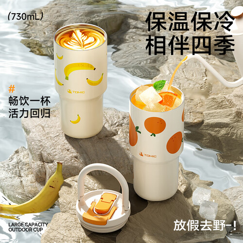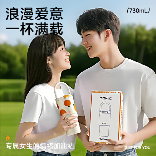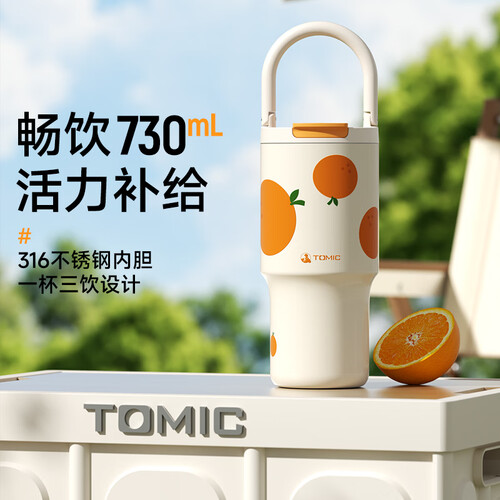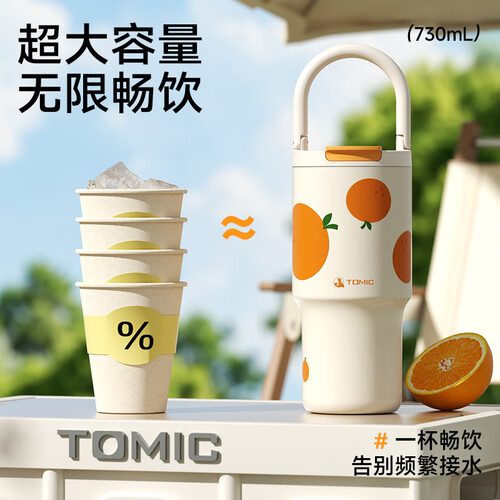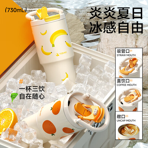 特美刻大容量保温杯冰霸吸管杯女生办公室保冷水杯高颜值 心想事橙【316L不锈钢内胆】