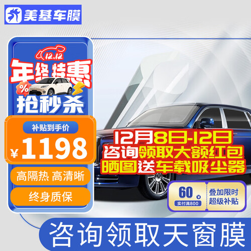 美基(MZJJ)汽车贴膜车膜汽车膜太阳膜隔热膜全车膜车窗玻璃隐私防晒防爆膜 V9氮化钛陶瓷全车膜(高清前挡+深色侧后)
