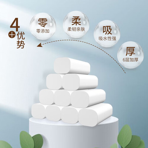 雨森(YUSEN)天然柔滑妇婴卷纸卫生纸700克/提12卷6层加厚无芯卷纸厕纸 6层 58g*12卷 【毛重700g*1提】