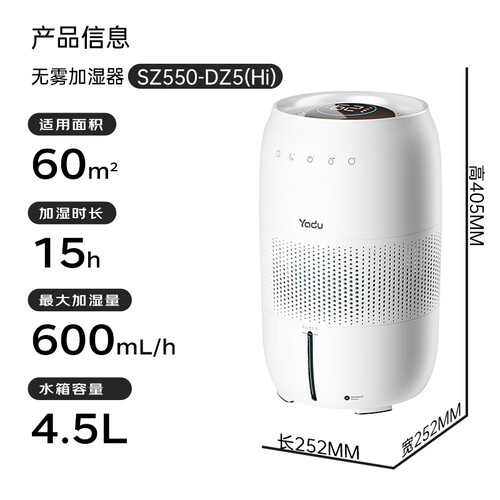 亚都无雾加湿器卧室家用大加湿量大办公室婴儿孕妇纯净式蒸发加湿空气母婴适用HuaweiAPP智能加湿600ml DZ5无雾加湿(APP版本)