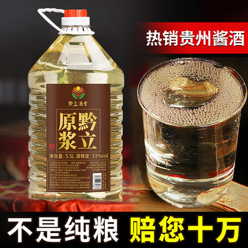 黔立原浆酒贵州10斤大桶装白酒纯粮食酱香型53度散装酒高粱酒泡酒散装 53度 5.5L 1桶 原浆酱酒 质检合格,假一罚十