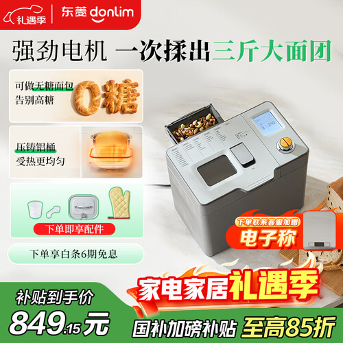 东菱(Donlim)【国家补贴】新款家用全自动无糖面包机 大容量 智能双撒 可预约 多功能和面机DL-1352灰色