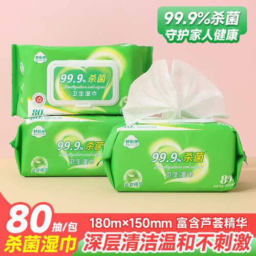 舒利来杀菌卫生湿巾温和不刺激芦荟精华80抽 6包480抽