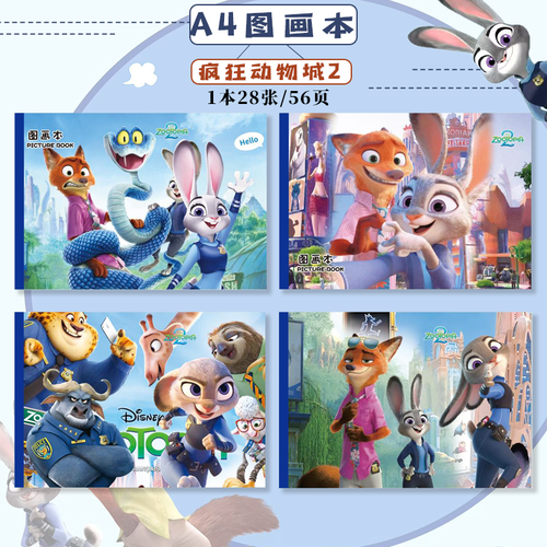 疯狂动物城文具A4/28张图画本空白涂画本绘画本幼儿园小学生美术绘画美术本涂鸦本素描本 款式随机1本装(28张/本)