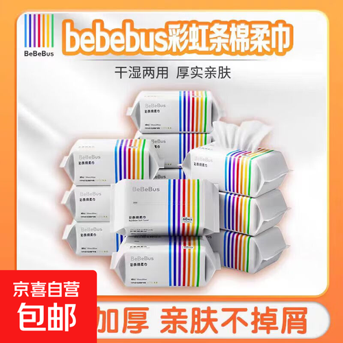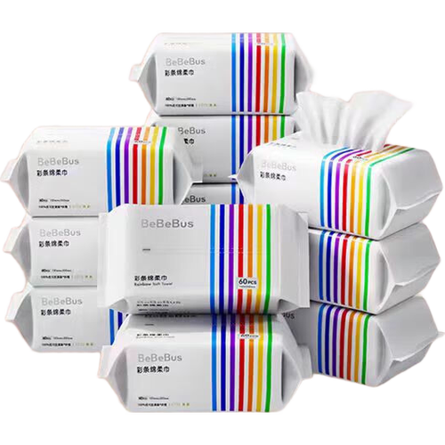 bebebus彩虹条婴儿绵柔巾新生儿专用实惠干湿两用洗脸巾非棉柔巾 彩条棉柔巾*3包