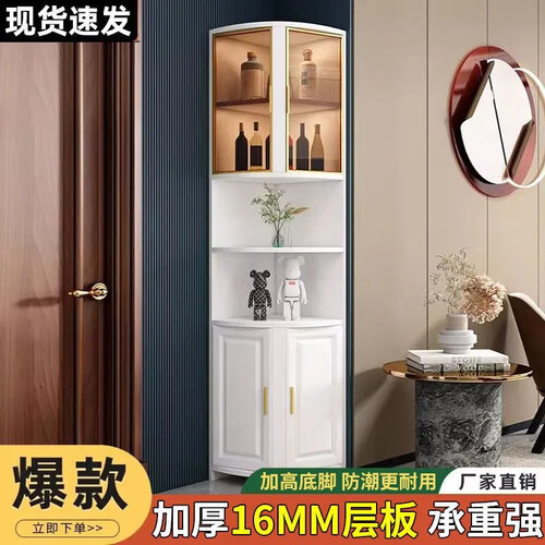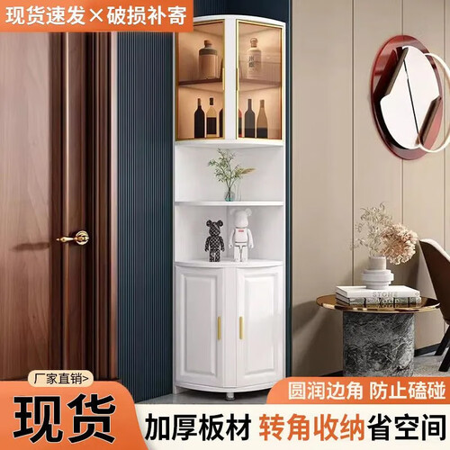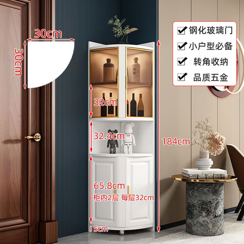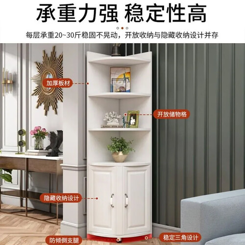 华莱德实木转角柜墙角三角柜角边柜收纳储物置物架客厅卧室转弯直角柜子 30×184五层白柜×颗粒