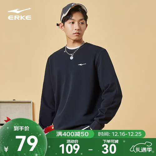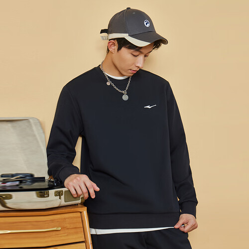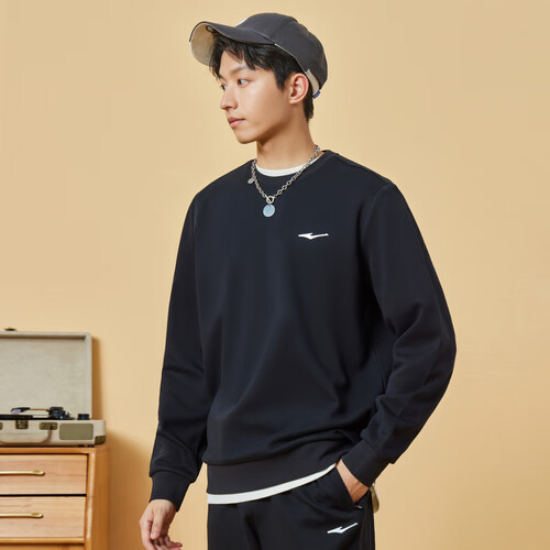 鸿星尔克卫衣男秋冬季新款加绒保暖休闲跑步运动服上衣套头衫长袖卫衣男装 【1028】正黑-加绒款 M