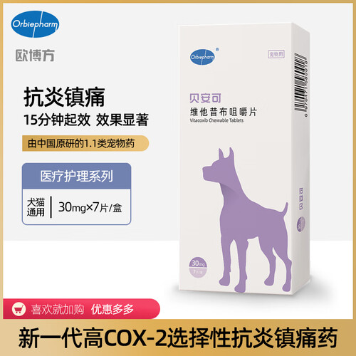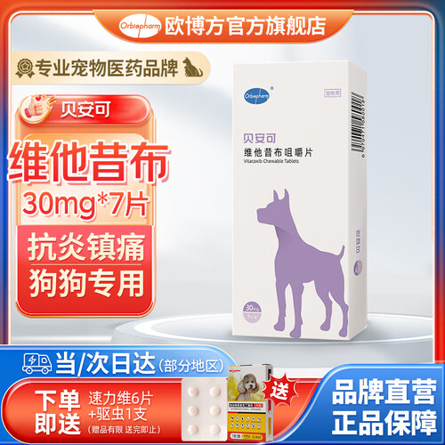 欧博方贝安可维他昔布金毛泰迪疼痛狗狗猫咪髋关节炎术后伤口消炎止痛片 30mg*7片/盒(犬用)