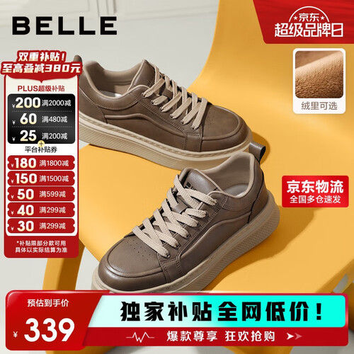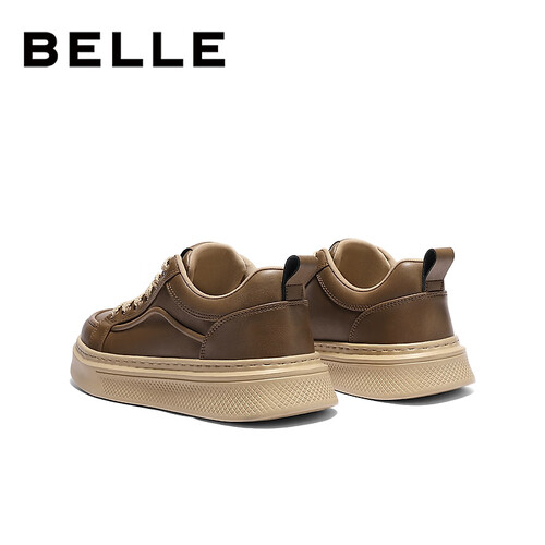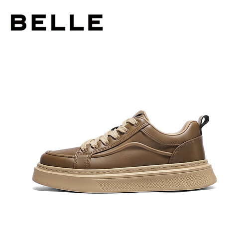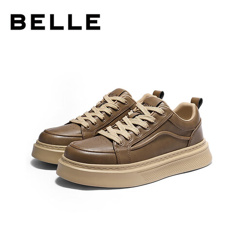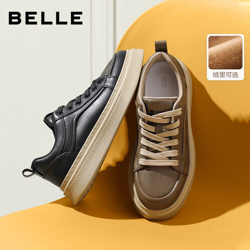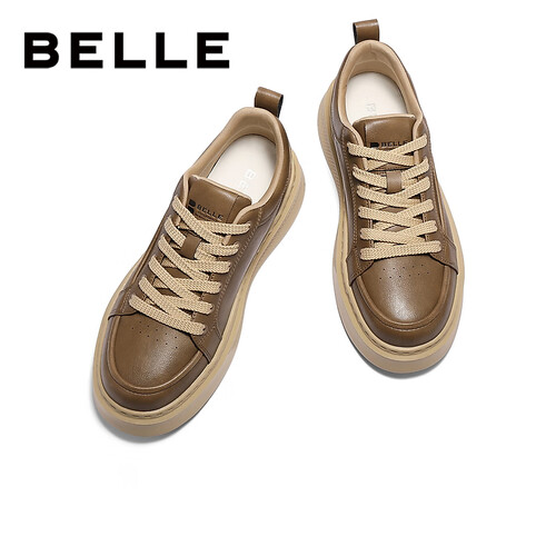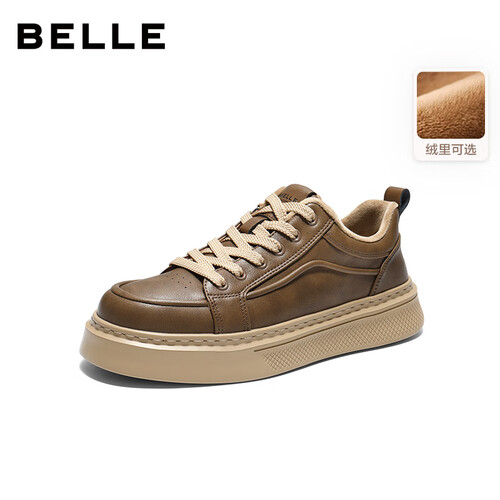 百丽男鞋厚底增高复古小白鞋25秋新运动休闲板鞋A2259CM5 卡其绒里 40