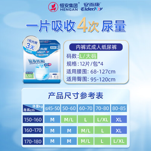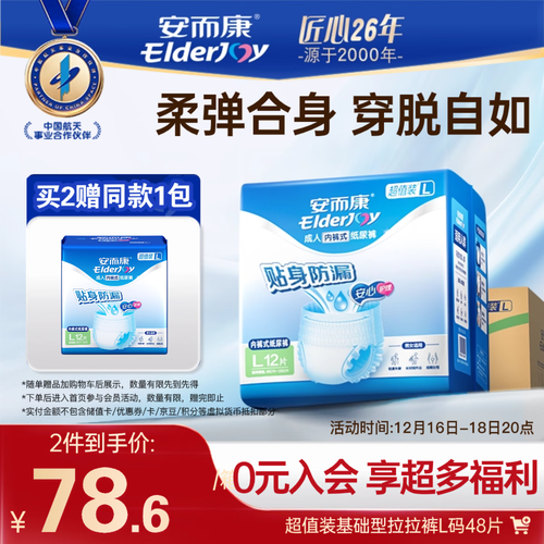安而康(Elderjoy)超值装基础型成人拉拉裤L48片臀围95-120cm内裤式成人纸尿裤老人