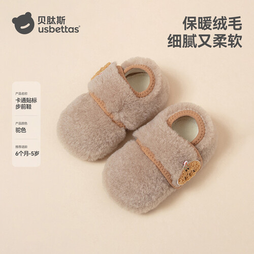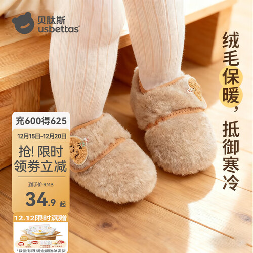 贝肽斯宝宝室内鞋新款婴儿鞋袜冬季学步鞋0-1岁保暖棉鞋防滑软底步前鞋 驼色 卡通标保暖步前鞋 12 cm(XS码,适合脚长10.5-12cm)