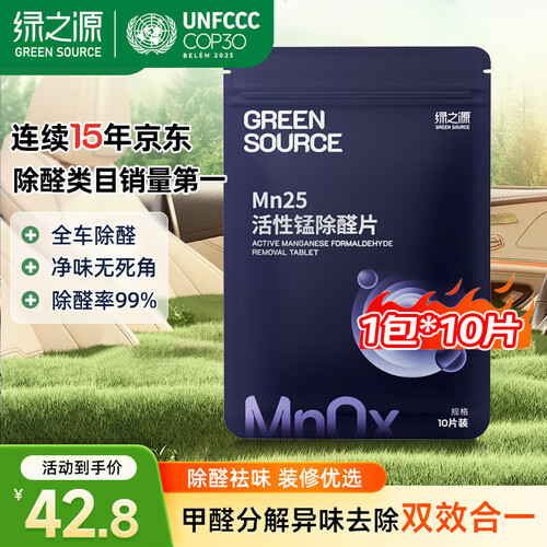 - 绿之源Mn25活性锰去甲醛分解毡强力除醛片甲醛清除剂母婴级家用除甲醛 Mn25丨活性锰除醛片丨10片装 10g 1包 10片/包