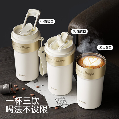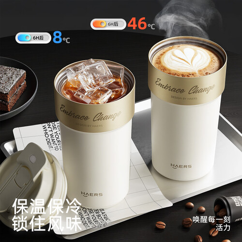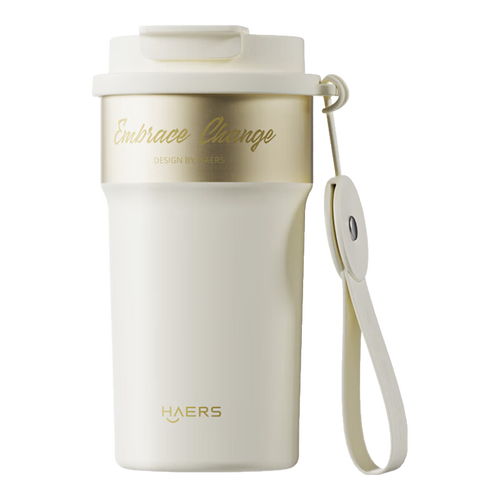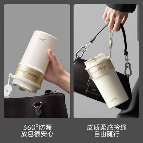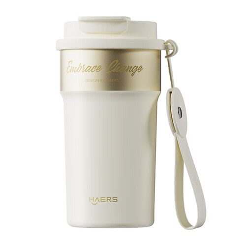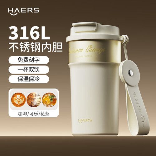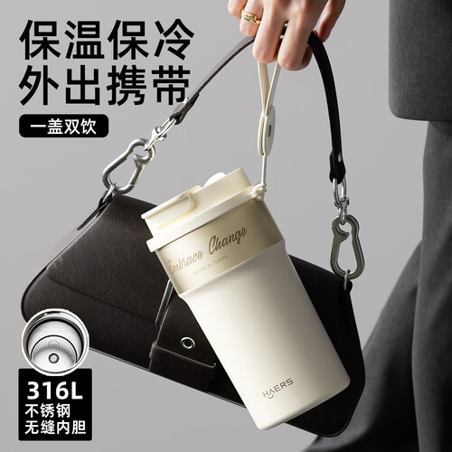 哈尔斯咖啡保温杯316不锈钢吸管杯男女士外出便携式保冷水杯车载适用 莹白460ml【赠皮质提绳】
