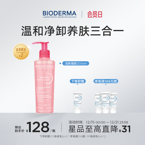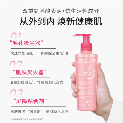 BIODERMA 贝德玛舒妍粉啫喱洁面卸妆凝胶氨基酸温和洗面奶敏感肌 200ml