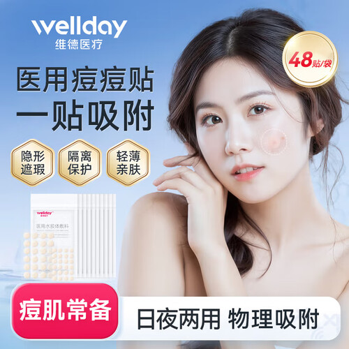 维德医用痘痘贴消炎吸脓隐形人工皮可上妆祛痘坑痘印水胶体敷料 【祛痘消痘】医用痘痘贴48贴/袋