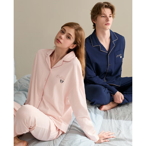 芬腾情侣睡衣女士春秋季新款长袖纯棉休闲大码开衫男款家居服套装 果绿(女) M 建议:女92-110斤