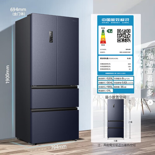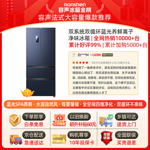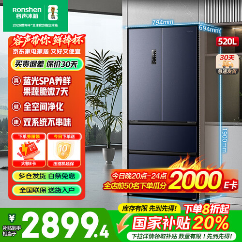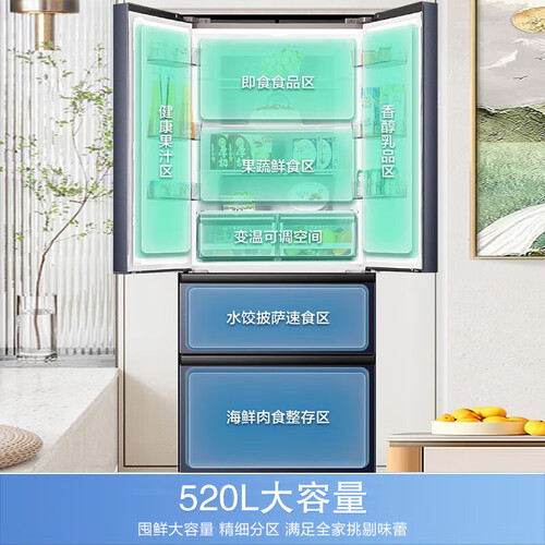 容声冰箱526L法式多门四门风冷无霜双循环一级变频家用母婴净味嵌入式电冰箱补贴20%以旧换新 【BCD-520WD17MP】全空间净化 雷达感温
