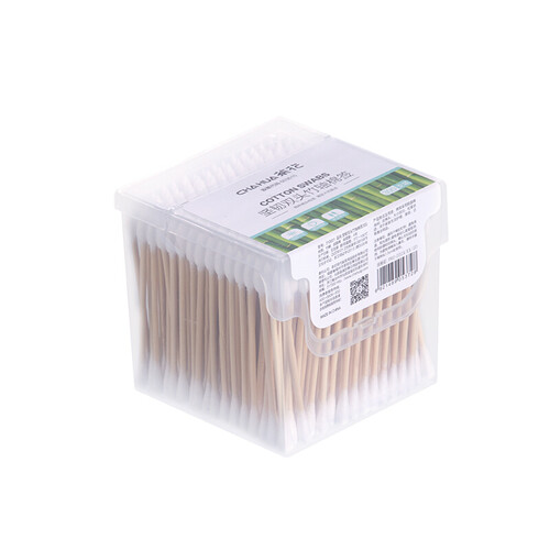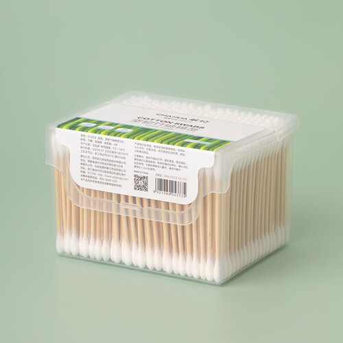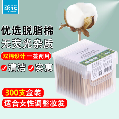 茶花新疆棉棉签木棒口红棉花棒掏耳朵尖头化妆用双头专用棉婴儿 盒装竹轴棉签300支(尖头+圆头)