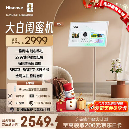 海信(Hisense)大白闺蜜机27X6N 27吋长续航柔光护眼屏大平板 可移动电视 随心屏智慧屏 国家补贴 27英寸