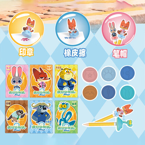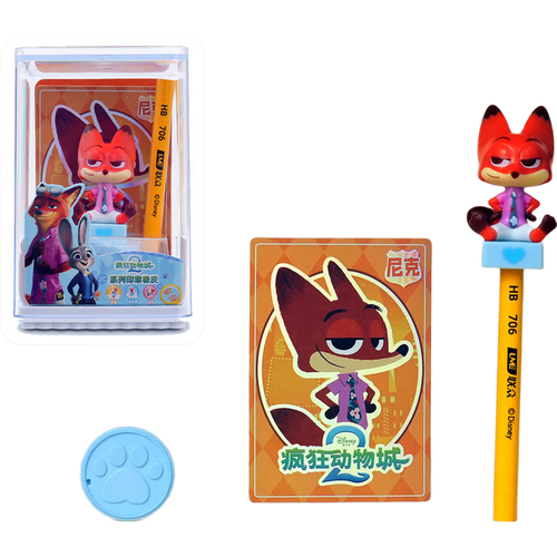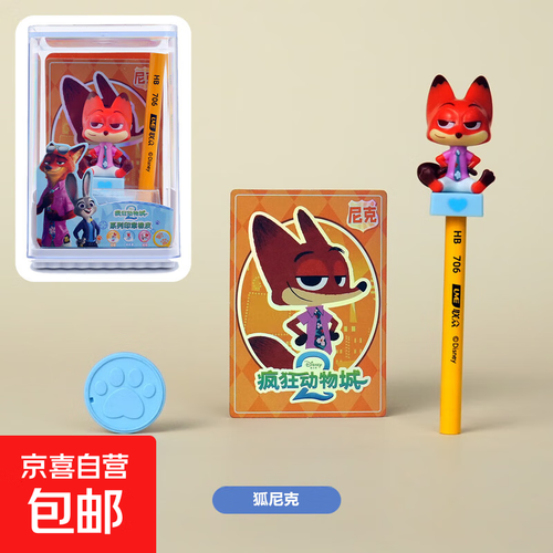 正版疯狂动物城2印章橡皮明盒周边玩偶盖瑞手办摆件朱迪尼克CP 尼克【玩偶+背景卡+铅笔+橡皮】