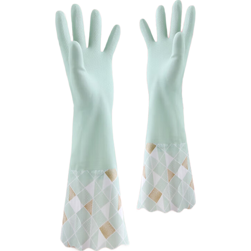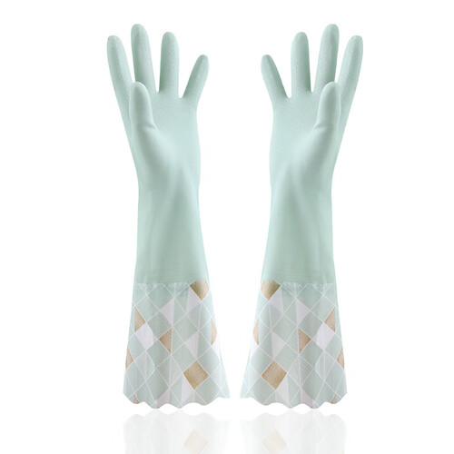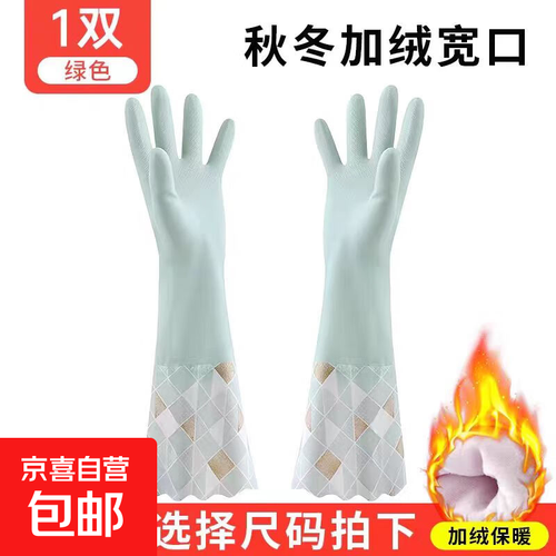 家用洗衣服手套加绒耐用冬季家务洗碗清洁防水乳胶手套刷碗干活 绿色【加绒宽口】长款