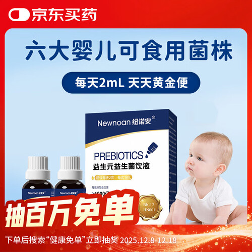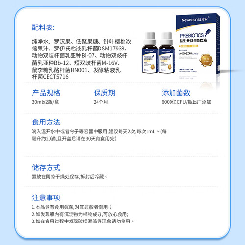 纽诺安 益生菌滴剂儿童宝宝肠胃益生菌六联婴幼儿可食用菌株30mLx2瓶
