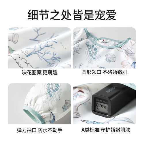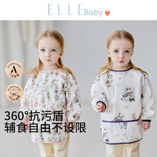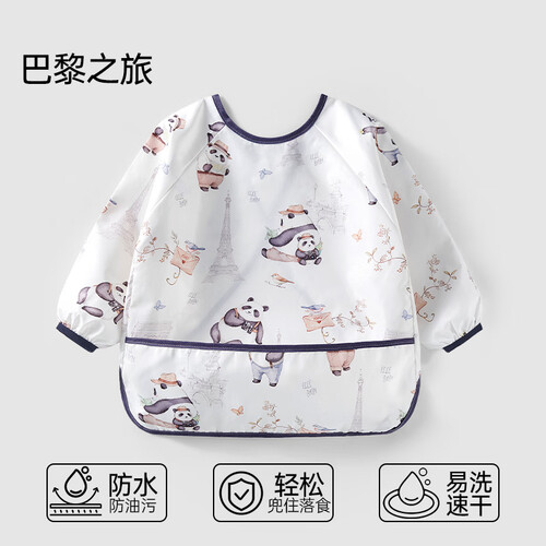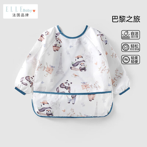 ELLE BABY婴儿罩衣宝宝吃饭衣反穿设计防水防油防污透气可机洗围兜画画衣 巴黎之旅 90/52