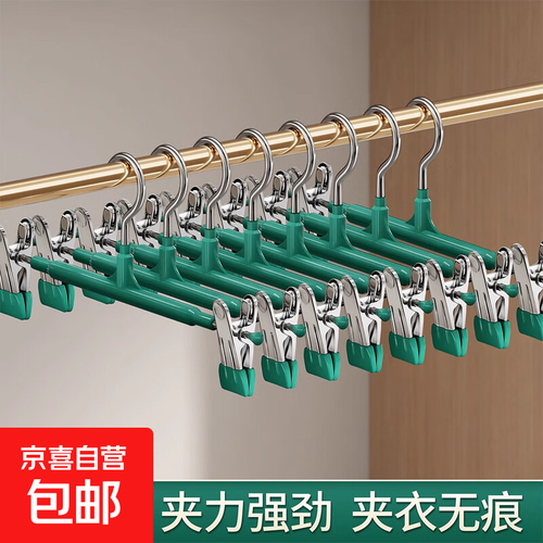 - 裤架家用无痕裤夹挂衣衣架裤子专用强力夹子防滑带裙子不锈钢晾晒 轻奢绿【夹子可移动 无痕裤架】 2个装