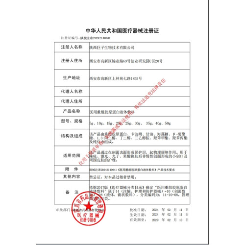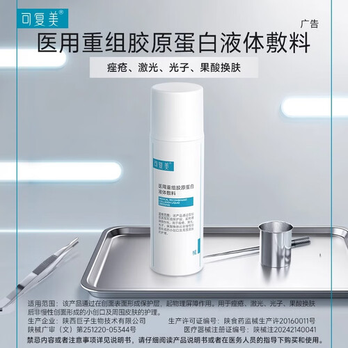 - 可复美医用重组胶原蛋白液体敷料器械水50g保质期截止2026年8月