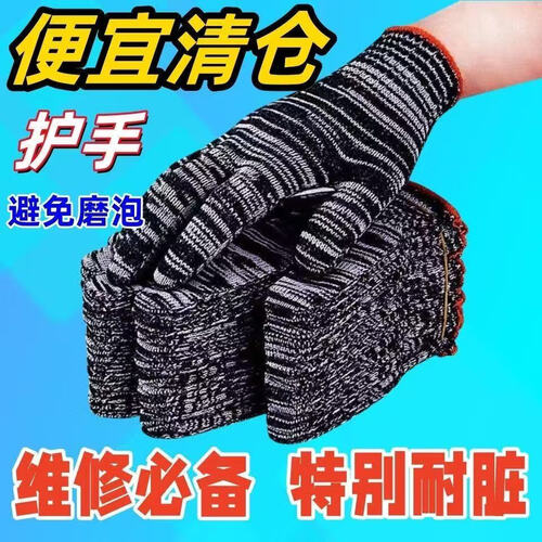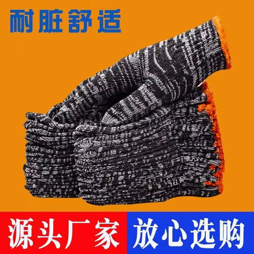 - 骑行手套灰黑纱劳保防护耐脏黑色耐磨防滑棉纱工地汽车维修手套 灰黑色 2双