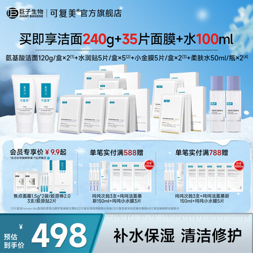 - 可复美氨基酸洁面套装透明质酸钠盈润精华面膜保湿水 胶原氨基酸洁面+水润贴+抗皱面膜